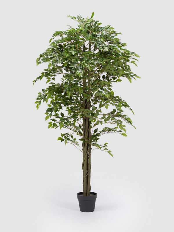 Ficus, resp. figorvník je ozdobná, umelá rastlina, výška 180 cm, má lesklé tvrdé listy tmavozelenej farby. Vhodná do interieru. Termín dodania je 14 až 21 dní.Rastlina je umiestnená v malom umelom kochlíku.