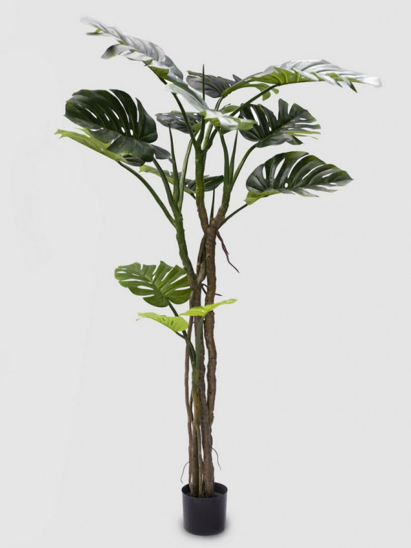 Monstera je moderná umelá rastlina s výškou 180 cm, v krásnom realistickom prevedení. Ratlina je umiestnená v ťažkom umelom kochlíku.